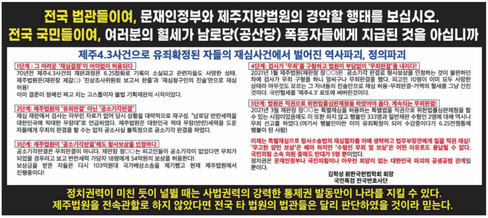 전국 법관들이여, 문재인정부와 제주지방법원의 경악할 행태를 보십시오.