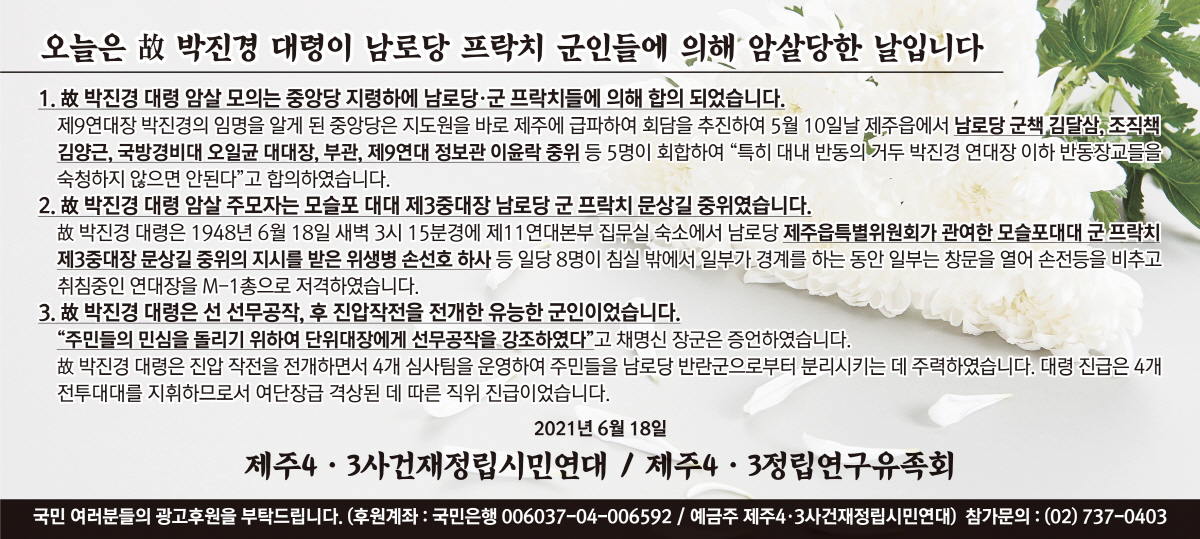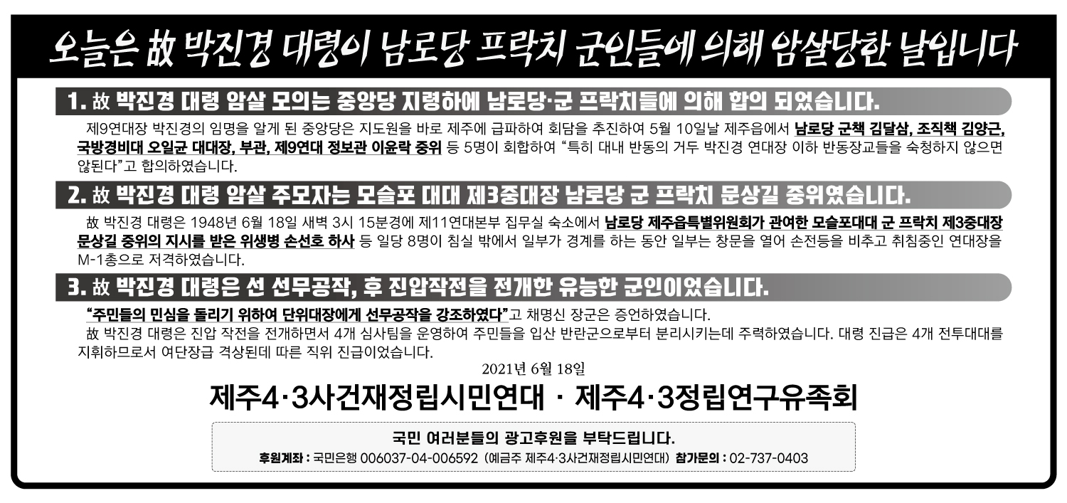 오늘은 故 박진경 대령이 남로당 프락치 군인들에 의해 암살당한 날입니다