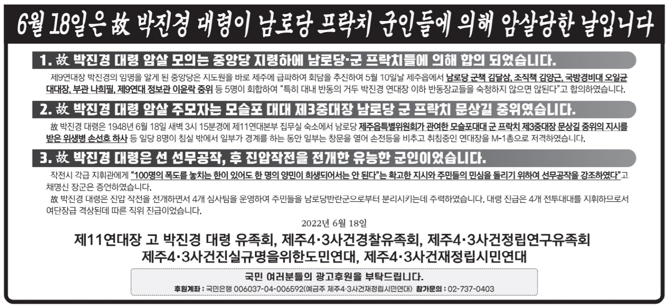 • 박진경 대령, 제주4.3사건경, 제민일보
