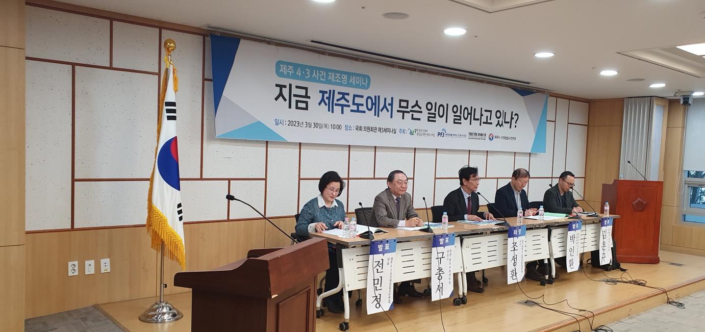 한변, 정교모, 4·3시민연대 등 시민단체들은 2023. 3. 30. 국회의원 회관에서 국민의힘당 서병수 의원의 도움을 받아  4·3사건을 재조명하는 세미나를 개최하였다. 이 번 행사는 최재형 국민의힘당 국회의원 등 전현직 국회의원, 이용우 전 대법관 등 법조인이 참석하였고, 4·3의 진실을 바르게 파악하여 4·3전쟁에서 새로운 반전을 모색하는 의미있는 계기가 되었다고 평가된다.